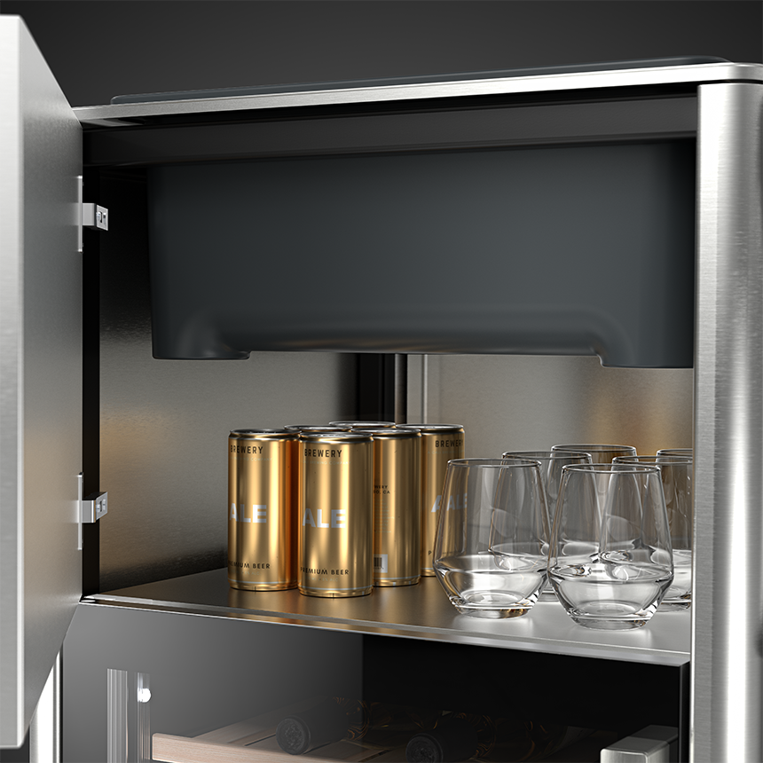- Dry-storage compartment keeps barware and accessories organized and concealed